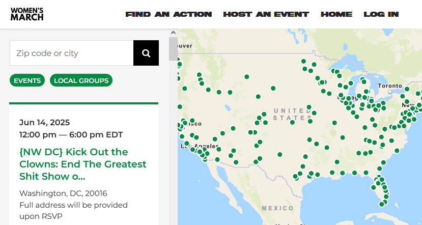Women’s March has a directory of protest actions taking place on other days too. You can scroll at this same link to see info about many upcoming protests.